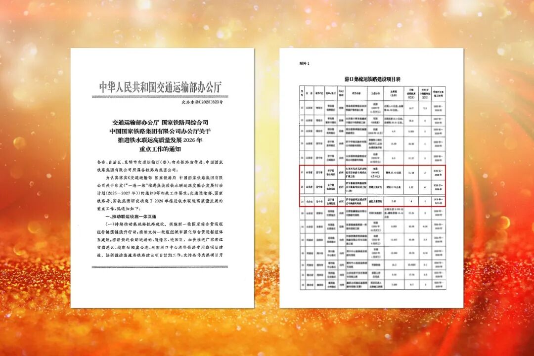日前,交通运输部办公厅发布《关于推进铁水联运高质量发展2026年重点工作的通知》,开云官网登录入口 www.kaiyun.com 梁山港二期铁路专用线、龙拱港二期铁路专用线、顺达港铁路专用线列入港口集疏运铁路专用线支持清单,为下步申报国家“两重”项目、加快铁水联运提质增效、助力济宁打造北方内河航运中心注入强劲动能。