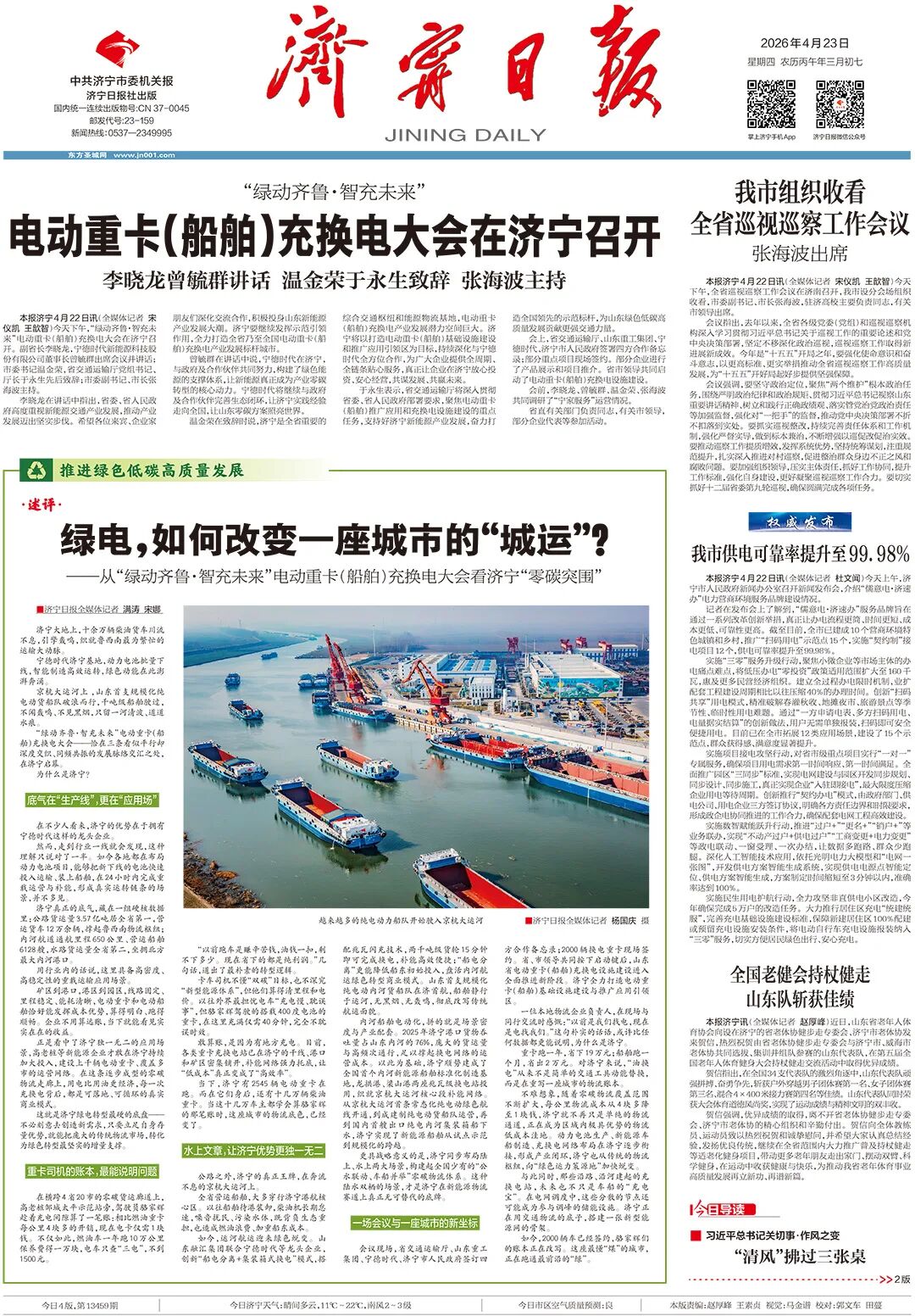 与此同时,那些沿路、沿河建起的充换电站,未来也不只是车船的“充电宝”。在电网调度中,这些分散的节点还可能成为参与调峰的储能设施。济宁正在用交通物流的底子,搭建一张新型能源网的骨架。